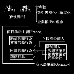 擬制商人 §52-I 商事会社 §52-II 民事会社 §503 付属的商行為 §523 準商行為 §516 債務の履行場所としての営業所 §233 株式会社の召集場所としての本店