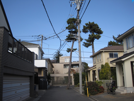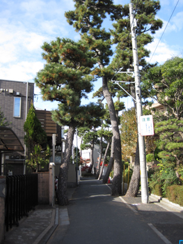 ☆海岸近くのお屋敷通りといった高級な雰囲気.道沿いの至る所に松の木がある.