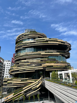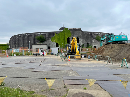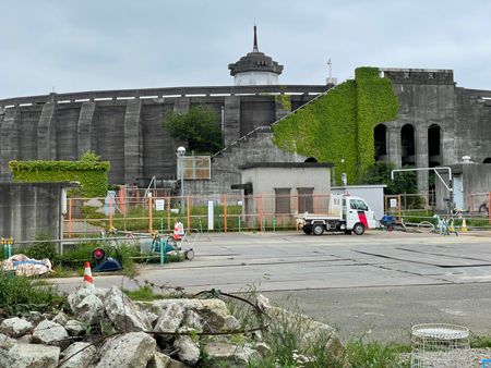 ☆次の目的地は、明大前駅と代田橋駅の間にある大きな東京都水道局の和田堀給水所。八角形の排気塔と、古代ローマのコロッセオのような円形の構造が目を惹く1号配水池。1934(昭和9)年の建築で取り壊し工事が進められている。この姿を目にできるのも、もう長くはない。