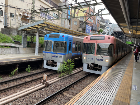 ☆明大前で京王線から京王井の頭線に乗り換え。両線は明大前駅で十字に交差している。