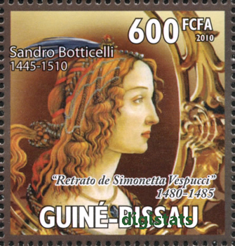 ベルリン国立美術館に所蔵される横顔の女性の肖像は, シモネッタを描いたものとして最も広く知られる.この小型の板絵テンペラ画は1480年前後の制作と考えられ, 若い女性が厳格な横顔で描かれている.長い金髪を複雑に編み込み, 真珠や宝石で飾った髪型, 白く繊細な肌, そしてわずかに憂愁を帯びたまなざしは, 静謐な気品を漂わせている.彼女の首筋から肩にかけての流麗な曲線は, 肉体の現実的存在感を超えた理想的な美の象徴として造形されている.