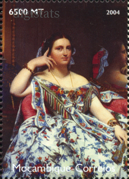 フランス新古典主義の巨匠であるアングル[Jean-Auguste-Dominique Ingres;1780-08-29/1867-01-14]の1856年の作品.この絵のモデルとなったのはフランスの裕福な銀行家であるポール=シガルト・モワテシエ[Paul-Sigisbert Moitessier]の妻のマリー=クロチルド=イネス・ドゥ・フコクール[Marie-Clotilde-Inès de Foucauld].