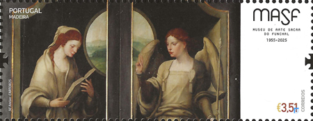 フランドルの画家であるピーテル・クック・ファン・アールスト[Pieter Coecke van Aelst,1527–c.1531]による祭壇画.左に聖母マリア,右に大天使ガブリエルを描く.ポルトガル領マデイラ自治地域マデイラ島フンシャル[Funchal]の旧司教宮殿にあるフィンシャル宗教美術館所蔵.