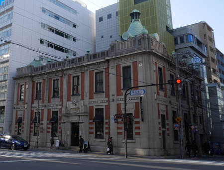 建築の設計者は辰野金吾の名を冠する辰野片岡建築事務所に帰されることが定着している.外観は赤煉瓦[小口積み風]と白い花崗岩の帯石を組み合わせた, いわゆる「辰野式」と呼ばれる様式的特徴を示す.立面は比較的簡潔で縦長窓が並び, 屋上に小さな塔屋状の構成を載せるなど, 欧化の意匠を和らげて都市の角地にふさわしい重厚さを与えている.こうした意匠は大正期における銀行建築の「威信性」と, 近代化した日本の都市空間における外来様式の受容と変容を端的に示す.