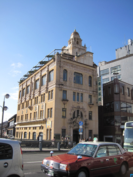 建物は鉄筋コンクリート造地上5階建で, 構造技術は当時として先進的であった.外観はスパニッシュ・ミッション・リヴァイヴァル/スパニッシュ・バロック・リヴァイヴァルを基調とし, 幾何学的装飾による折衷的デザインを示す.ファサードは四条通に面し, 1階は商業施設として開放的に構成され, 2階以上は縦長窓列によってリズミカルな立面表現を形成している.窓周りや壁面にはスクラッチタイルや装飾テラコッタが用いられ, 陰影に富んだ立体的な表面処理がなされている.角部や頂部には装飾的な処理を施した塔屋が設けられ, 展望スペースとして鴨川や四条大橋を望む構成となっている.バルコニー状の空間は鴨川側に張り出し, 眺望を重視した設計意図がうかがえる.