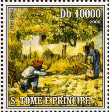 ゴッホ(1853-90)の1890年の作品。ゴッホの最晩年の作品だというのに微笑ましく実に家族的な一瞬を切り取って描写している。加えて画面の明るさは幼い命を得た家族の希望に満ちた内面を表現している。さぁ、こっちへおいで。さぁ。若い夫婦の声が聞こえてきそう。
